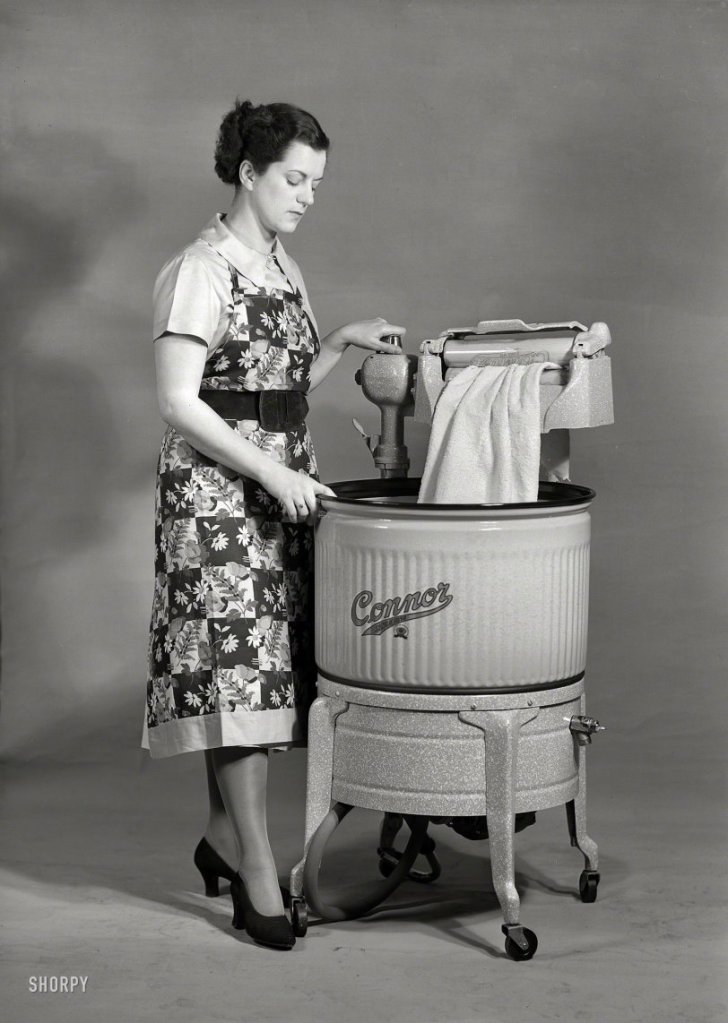 Growing up, I don’t remember we had one of these, but I’m sure we did. Everyone had a wringer washer. “Wringer washers were used from the mid-1800s until the 1980s” Google. The wringer washer used a simple process: 1. Water; 2. Soap; 3. Pressure.