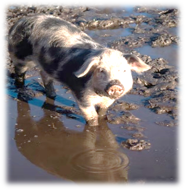 So, my buddies & I from the Agri Club go off to the pig pen. We picked out a shoat (small pig) and developed our plan. We were in the ankle-deep stench of mud & slop, moving in a semi-circle, cornering the pig when the pig figured out what was going on. Pigs are not stupid. He picked the weakest link to break free, me. BAM!!! The pig hit my legs so hard it knocked my feet out from under me and I hit face first into the mire. When I got up, the guys were all laughing, the pig was running free, I had tasty pig pen from ear to ear, my lip was busted, and I had to dig through the mud & pig slop to find my glasses. And it all started with what seemed like a good idea.