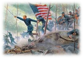This brought me back to Joshua Chamberlain at Little Round Top, Gettysburg. Of Chamberlain’s original 1,000 men, only 386 (Google) survived before the charge. Many of the men had no ammunition and they were heavily outnumbered when Chamberlain order, “Fix Bayonet” and “Wheel Right” (Charge). So down the mountain went these 386 men facing 3 times the enemy force. The picture is a painting, with the flag, from that moment. This is the image God gave me, “Fix Bayonets & Charge.”